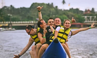Experience the thrill of navigating through strong rapids on Sri Lankaβs rivers.
